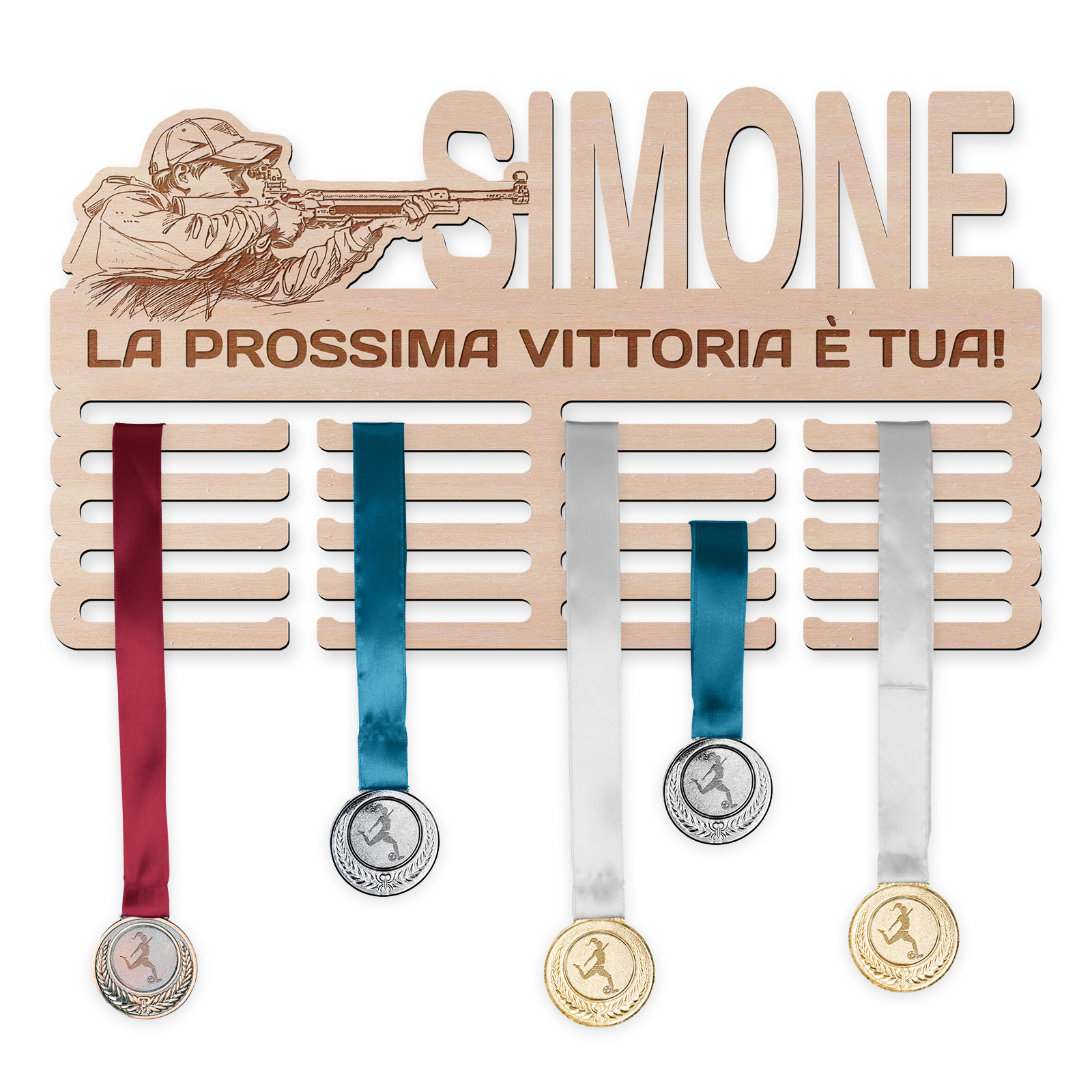 Realizziamo appendi medaglie su misura secondo i tuoi desideri. Basta fornire il nome, una frase motivazionale e la silhouette sportiva e noi ci occupiamo del resto.
